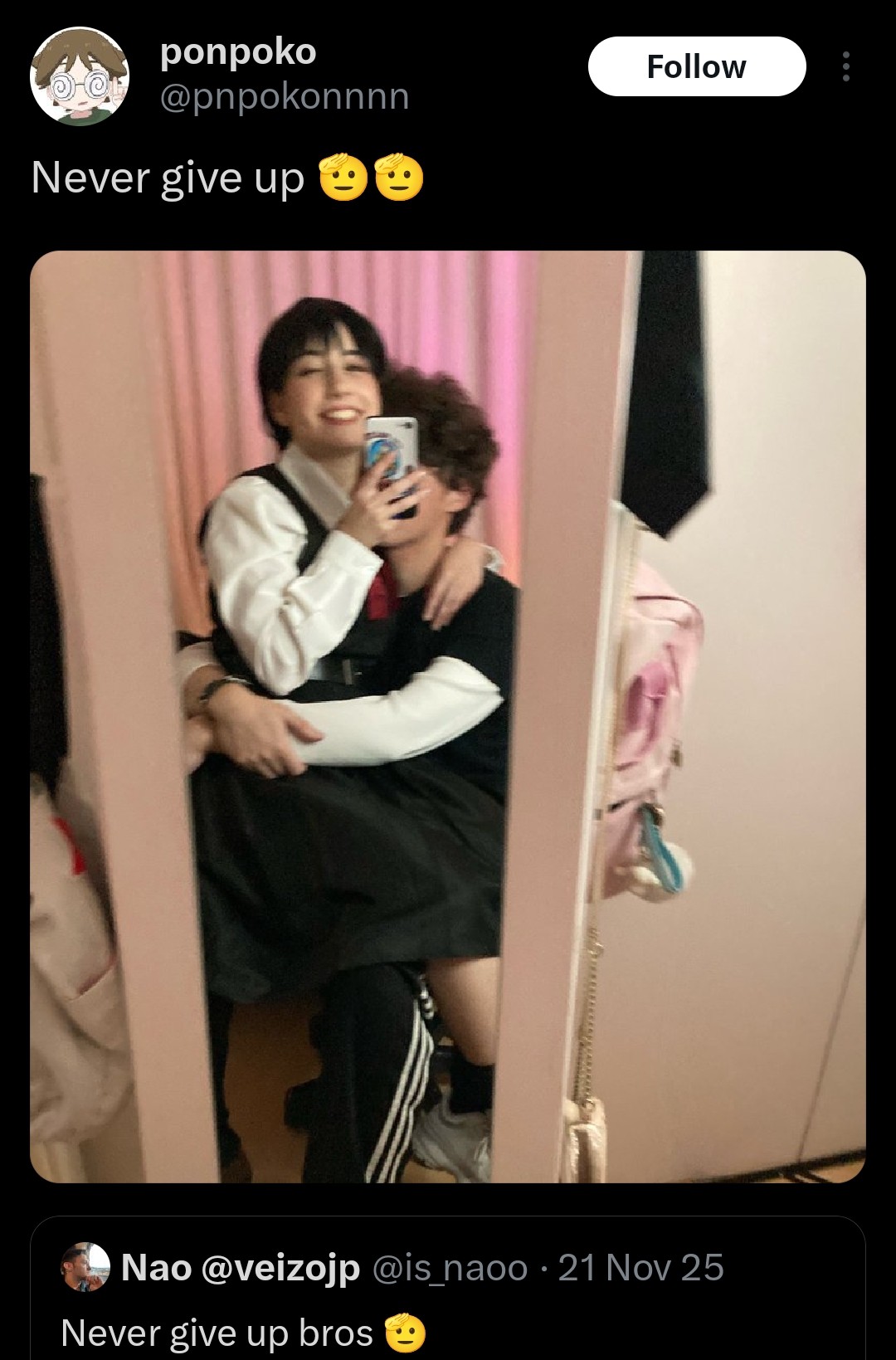La mina cuando empezó a hacer ese contenido el novio la dejó, se perdió un tiempo de redes y al tiempo parece que volvió con el mismo novio pero dejó atrás su cuenta de cosplay y ese tipo de contenido y se dedicó a puro outfit y Kawai pero se ve que en el fondo es perrita