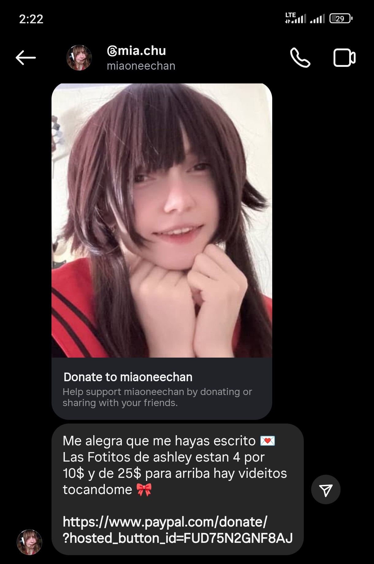 A esta pendeja una vez le escribí en Instagram que si vendía zing con cosplay y nunca me contesto, talvez solo a conocidos. U otra que sea una estafa