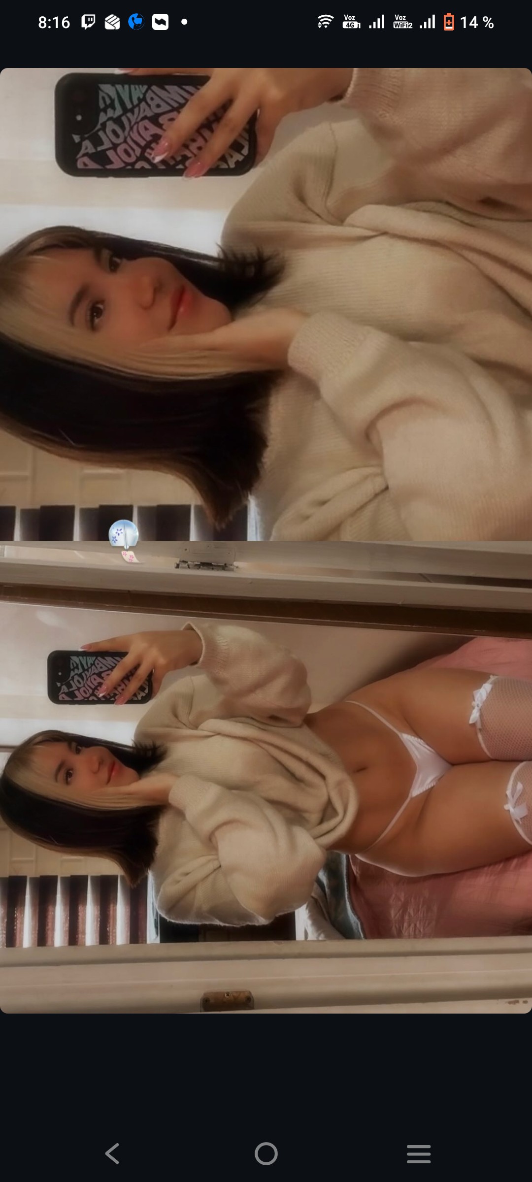 yo tenia un par de fotos pero los videos siempre se me borran Xd a donde los meto en weas y despues las borro sin querer, los videos no tienen casi ni un brillo pero la wna me da morbo porque tiene cara de mapuche y ta rica