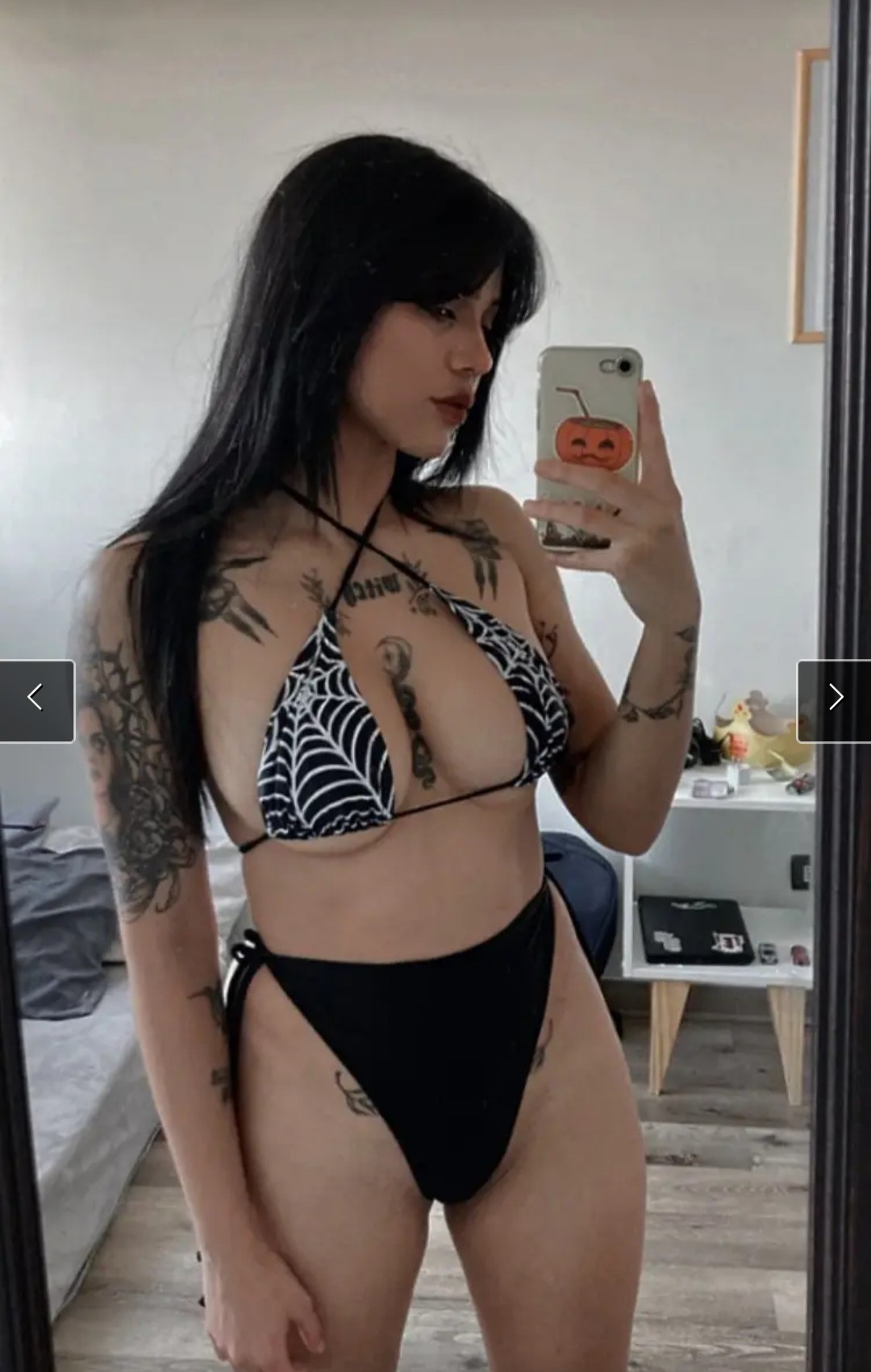 REEMPLAZA COMPLETAMENTE TODA (aqui englobamos y rectificamos ) la ropa por (ahora si espeficicamos por cual cambio de ropa ) un microkini delgado o muy delgado de un solo tirante , (ahora el color ) color negro , (si pensan arrojarles liquidos , les recomiendo que usen el colo blanco , se nota la transparencia y lo marcado ,