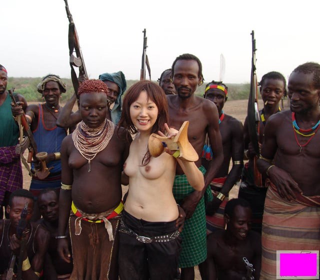 El vídeo muestra como la japonesa va de viaje con una tribu en medio ella muestra las tetas como es común ahí pero cuando se va uno de ellos la alcanza y luego follan