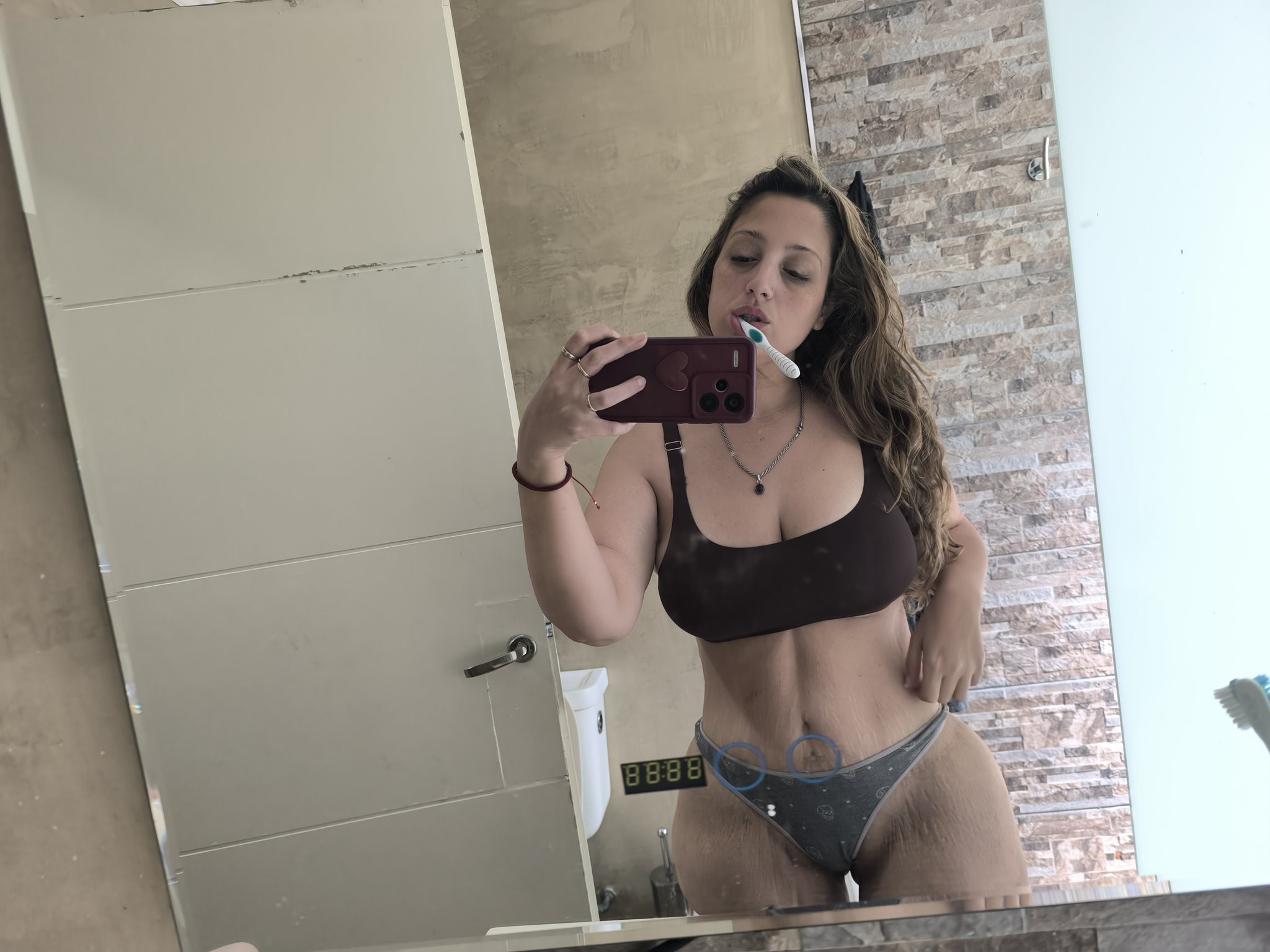 Por lo que dice tiene tocándose, cojiendo y chupando pija.