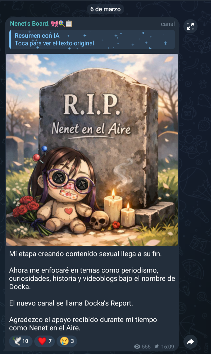 Una vieja que se llama Nenet o algo así, creo que vivían juntas, quizá cogian d3 vez en cuando, pero la chava esa hace contenido nopor.