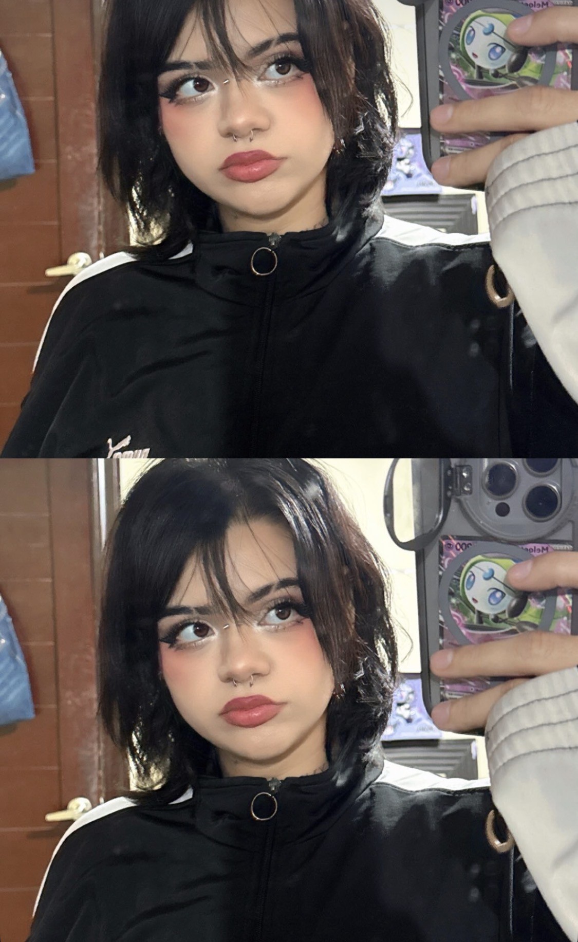 Ví dos que son del mismo lugar, seguramente era uno solo que lo cortaron pero buenas caras que hace la chava