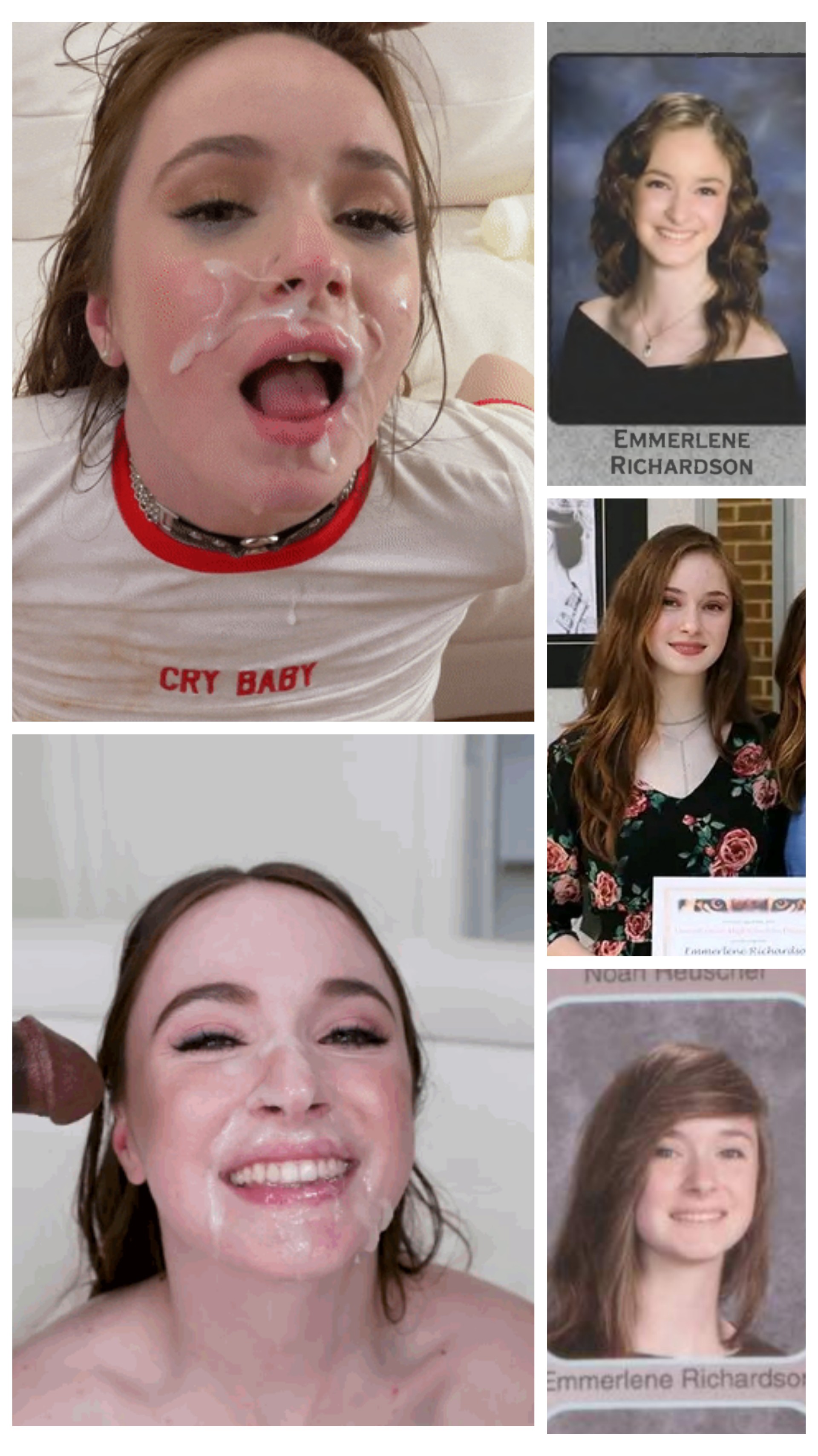 In the vid I love how he grabs her head by her hair and uses her throat as a fleshlight and then empties his balls in her mouth. ZERO gagging or discomfort on her part. Innocent face but she cleary has been swallowing cock for many years.