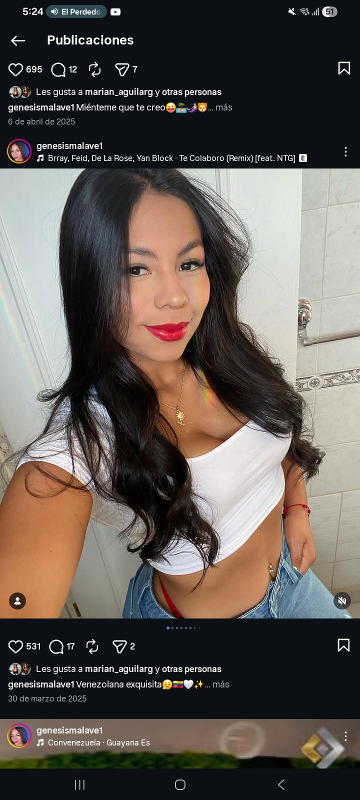 Mis negros... Eso literal lo conseguí de casualidad scrolleando en erome... El nombre me pareció conocido, vine acá y busque... Y como ví q estaban pidiendo de ella.. pss los coloque... Tambn vi a algunas de las q a veces piden y nunca suben, pero me dió pereza subirlas... Si vuelven a pedir de ellas tal vez haga lo mismo q con esta!! Y si veo algo mas de esta por ahí lo mando por acá!!!